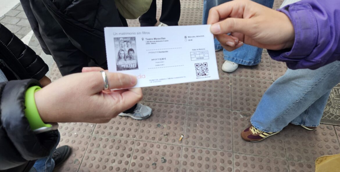 Fundación Enrique Salaberría nos ha brindado la oportunidad de asistir a las funciones del pasado 8 y 9 de abril de la obra «Un matrimonio sin filtros» las personas que se han beneficiado, un grupo de participantes del proyecto Acompañamiento social y atenciõn psicolõgica que desarrollamos en el distrito de Latina y un grupo de mujeres del proyecto CONeLLAS se han integrado con la cultura de la ciudad.